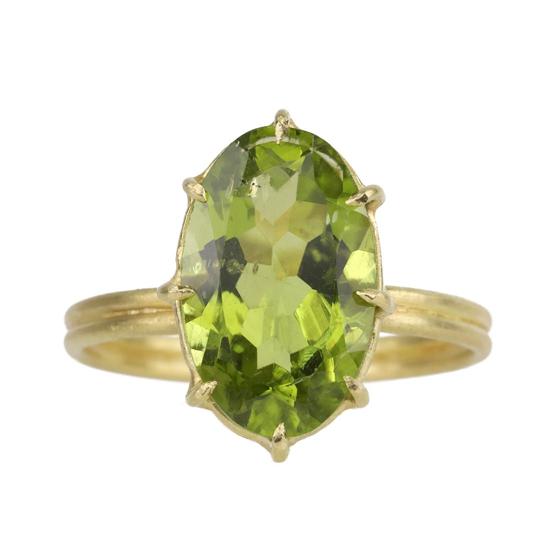 Gold Multi-Prong Large Vertical Oval Peridot Ring